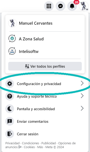 - Ingresa a tu cuenta de Facebook y haz clic en Configuración y privacidad.